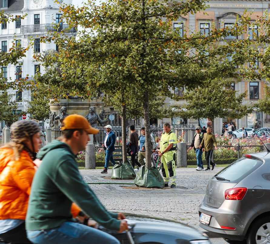 Som en del af vores vandingsydelser anvender vi også vandingsposer, som er en skånsom og effektiv metode til at give træer en jævn og kontrolleret vandmængde over længere tid. Vandingsposerne er et stærkt supplement til den almindelige vanding og bruges både i anlægsfaser og i veletablerede områder, hvor træerne kræver ekstra opmærksomhed.